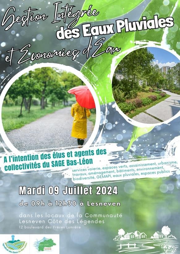 La matinée est dédiée à la Gestion Intégrée des Eaux Pluviales et aux Économies d’eau sur le territoire du SAGE Bas-Léon. Cette rencontre est destinée aux élus et agents de vos collectivités en charge de la Voierie, des Espaces verts, de l’Assainissement, de l’Urbanisme, des Travaux, de l’Aménagement, des Bâtiments, de l’Environnement, de la Biodiversité, de la GEMAPI, des Eaux Pluviales et des Espaces Publics.
